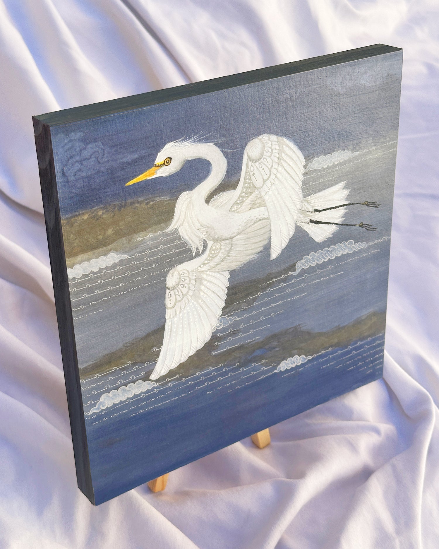 - Mounted print on wood panel comes varnished with easel stand and gift box